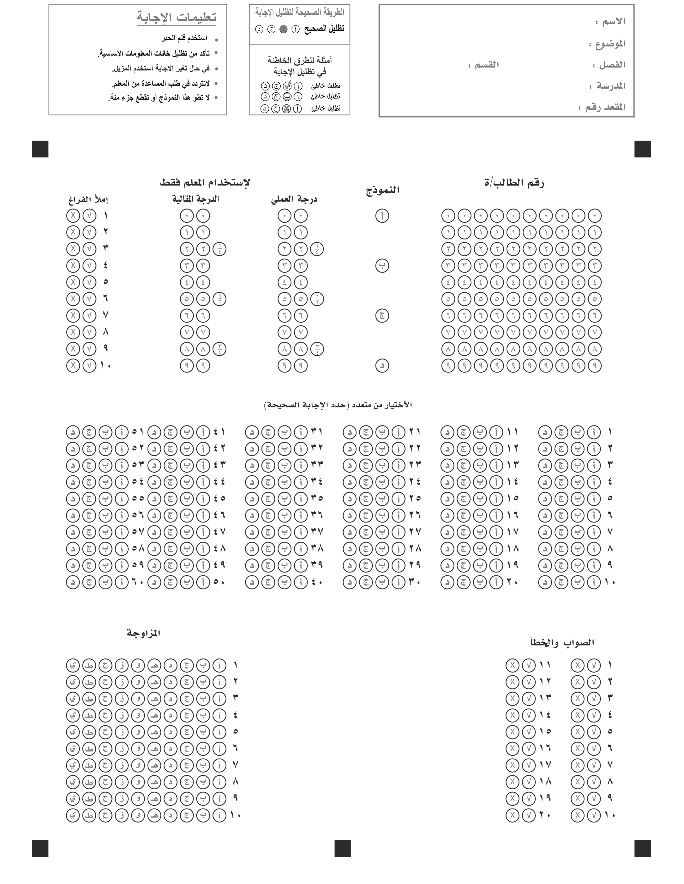 دعم جميع نماذج أوراق الإجابة